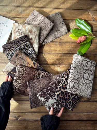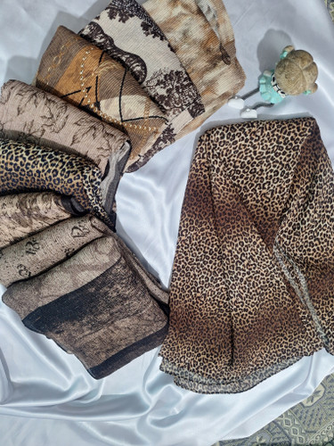 شال موهر پلیسه افقی دور نوار گاندوزی شده پلنگی