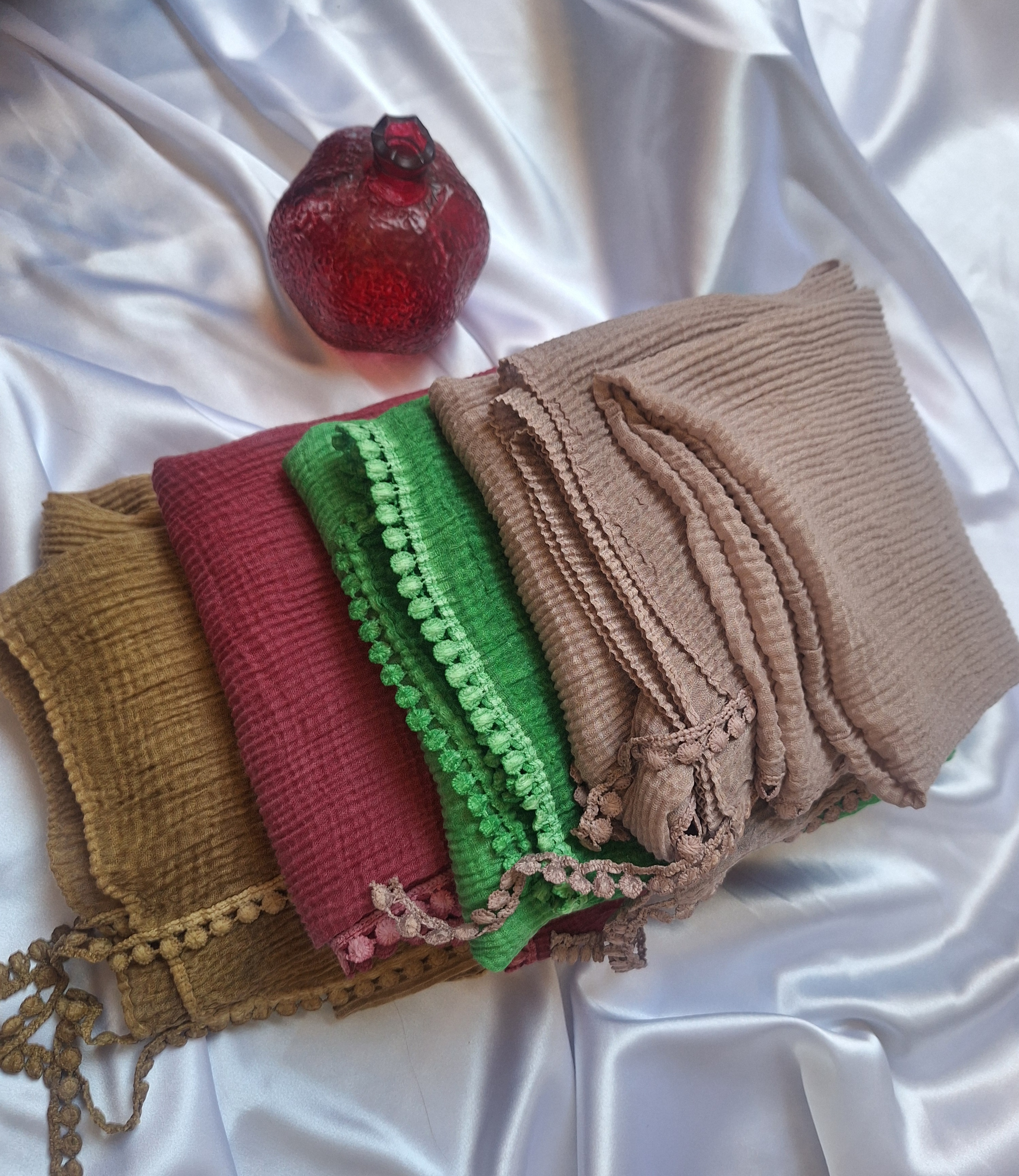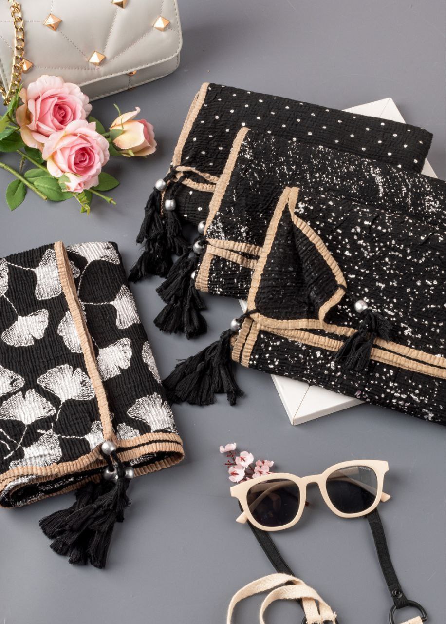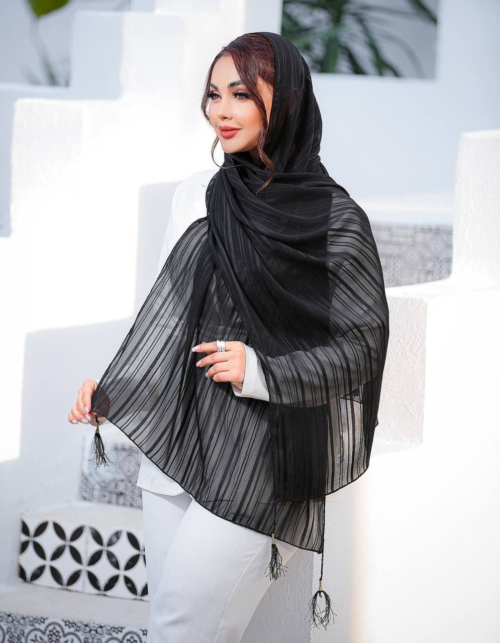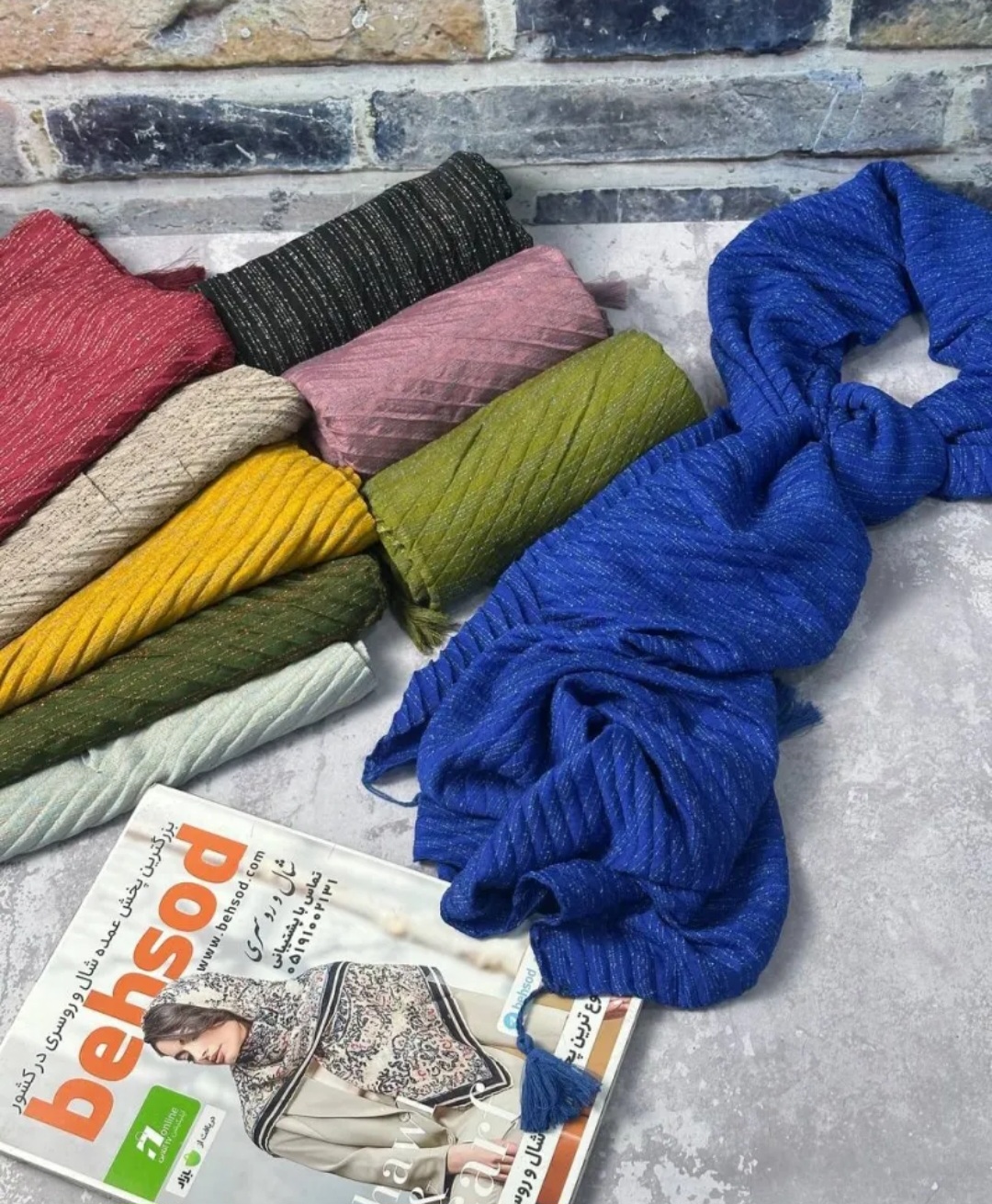 شال موهر پلیسه افقی دور نوار گاندوزی شده پلنگی