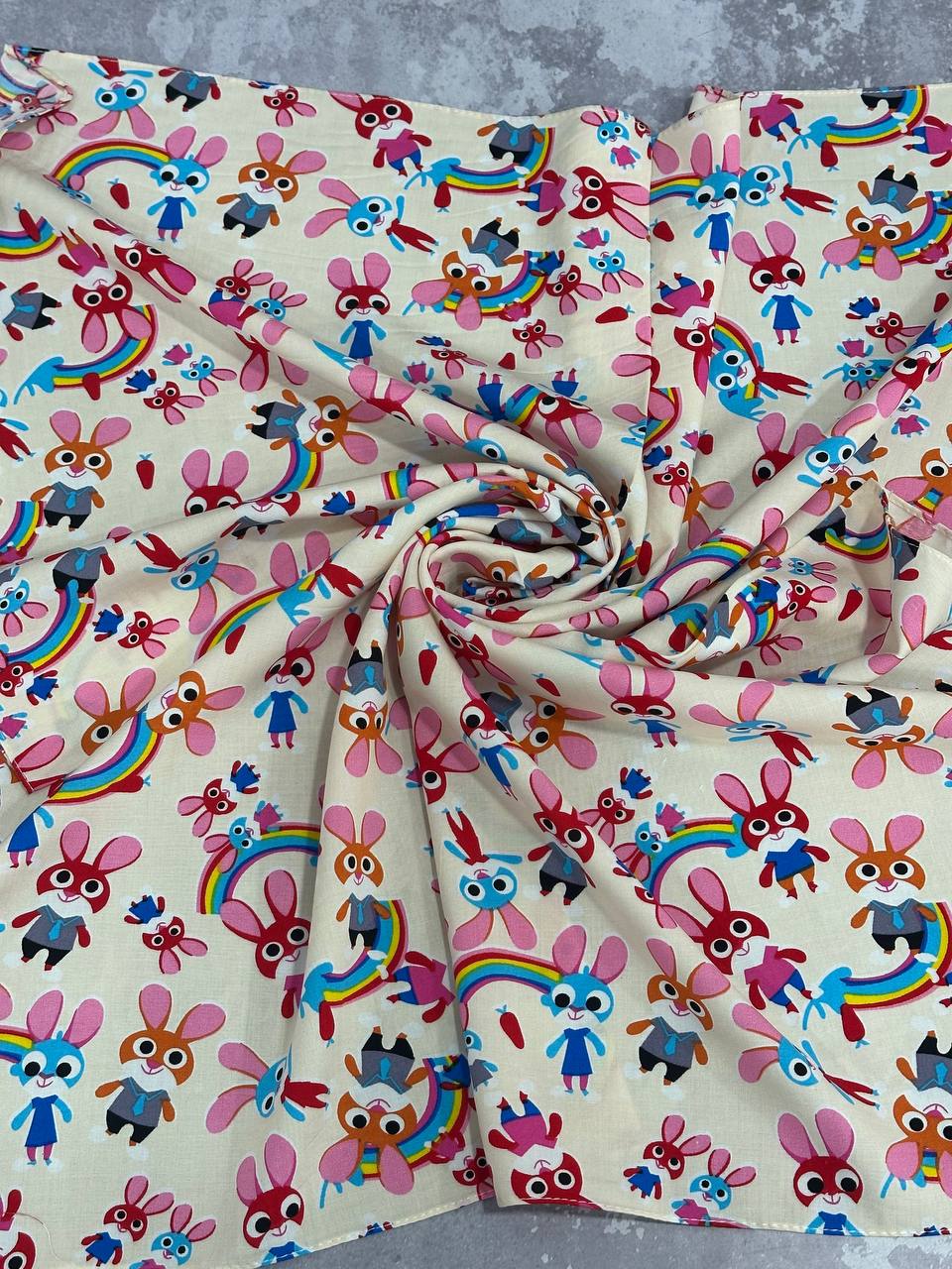 زمینه شیری با طرح رنگین کمان و خرگوش