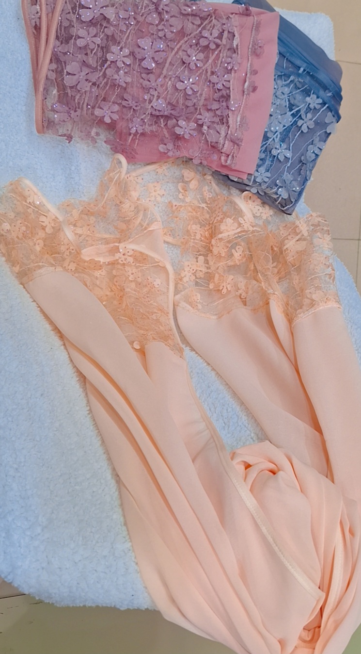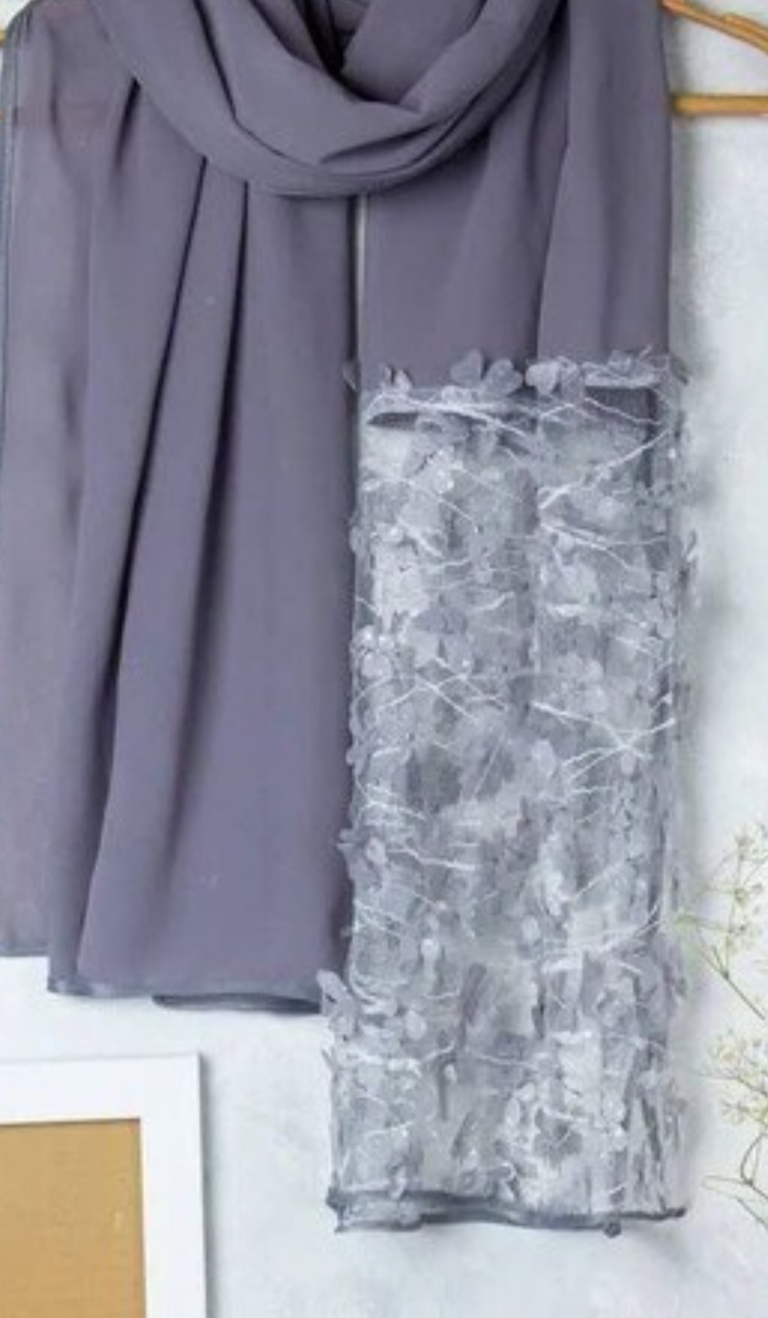 🪻شال مجلسی حریر کرپ دستک توری شکوفه
