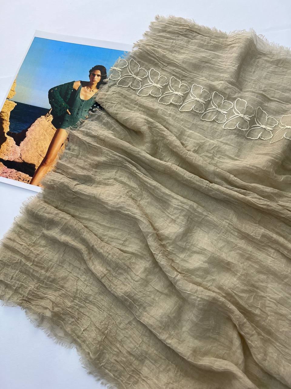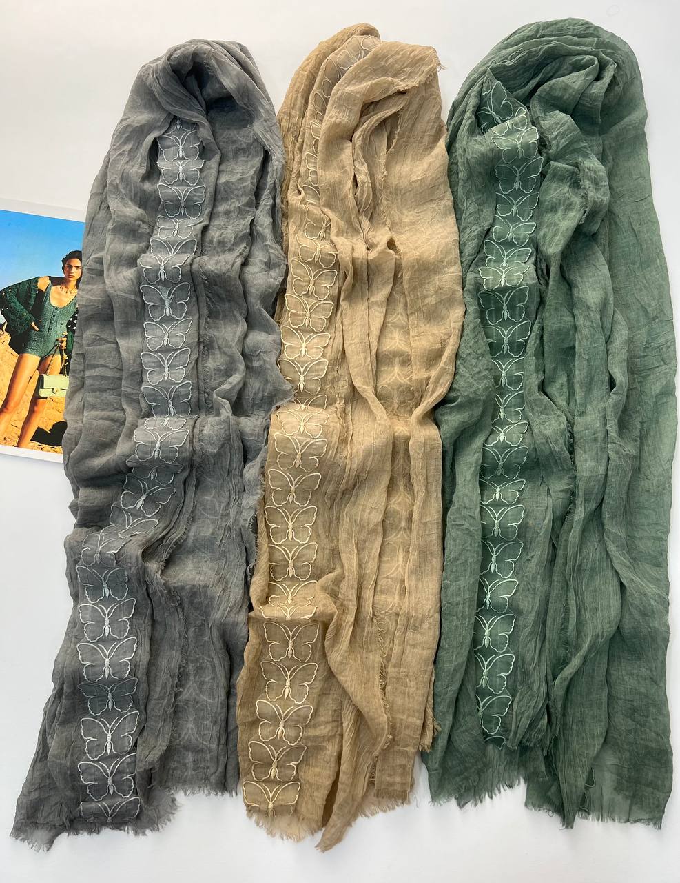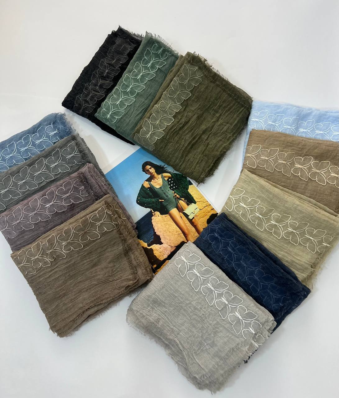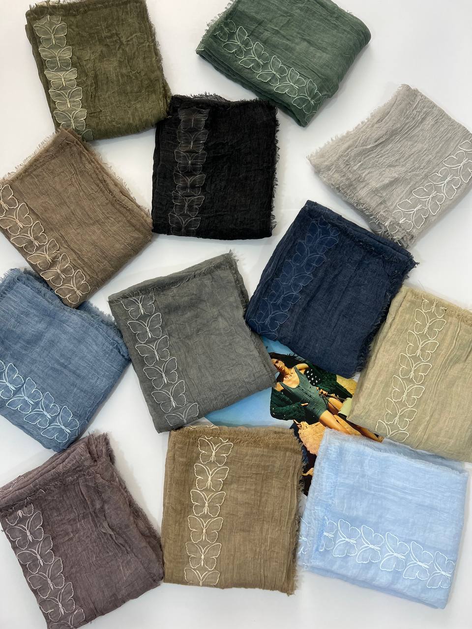 🌸شال سوپر نخ وارداتی دور ریش استیکر پروانه