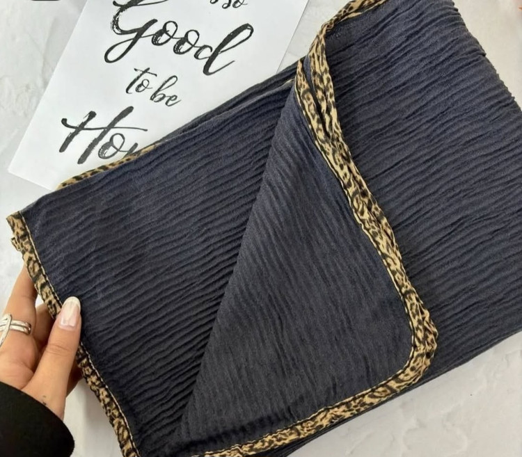 شال موهر پلیسه افقی دور نوار گاندوزی شده پلنگی