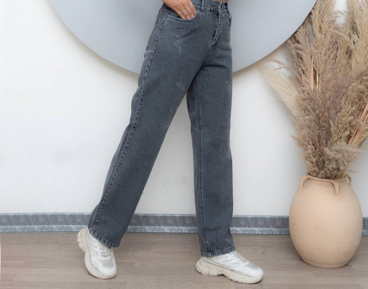 شلوار مدل نیم بگ طوسی جین زنانه