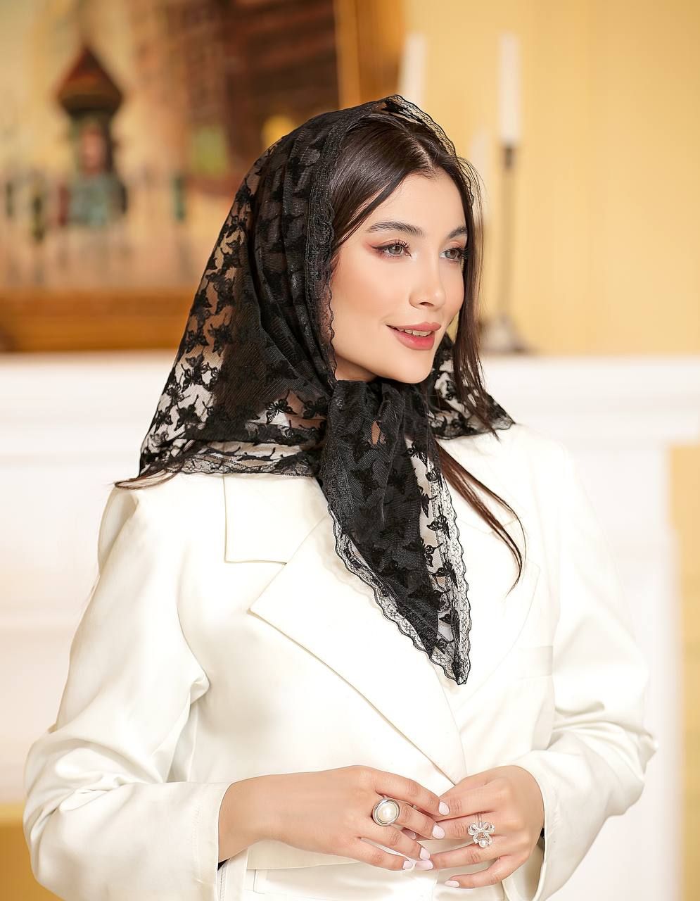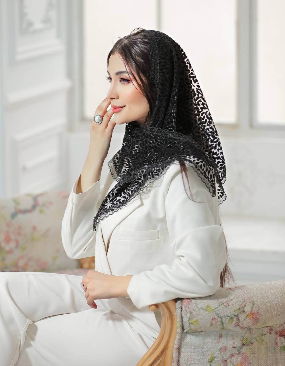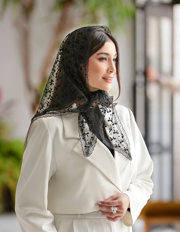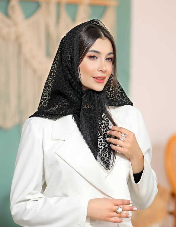 🌻روسری سه گوش مشکی توری مخمل دور دانتل توری