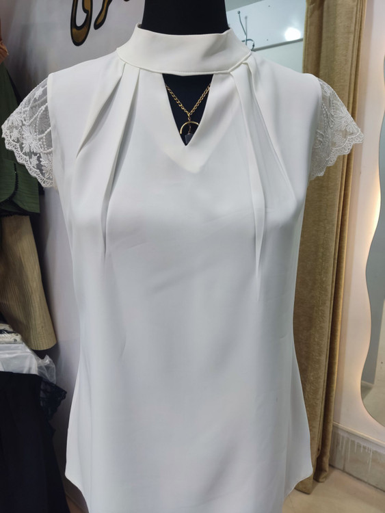 تاپ بلند زنانه نیمه آستین سرخود گیپور
